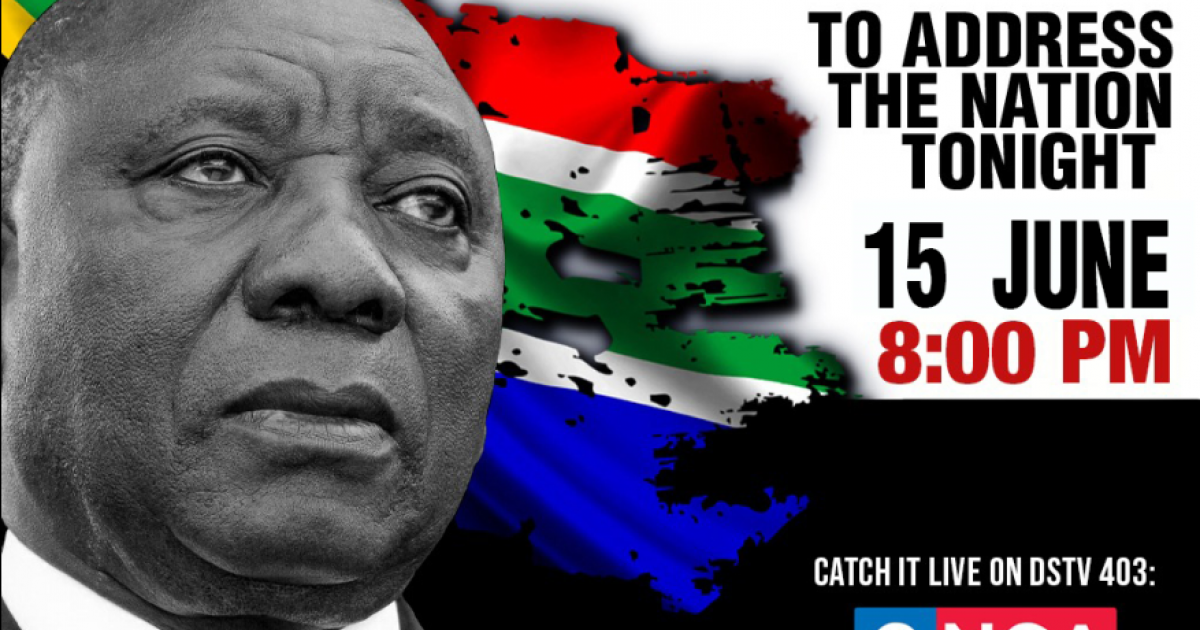 President cyril ramaphosa will address the nation at 19h00 today, sunday 30 may 2021, in relation to the country's response to the coronavirus pandemic.